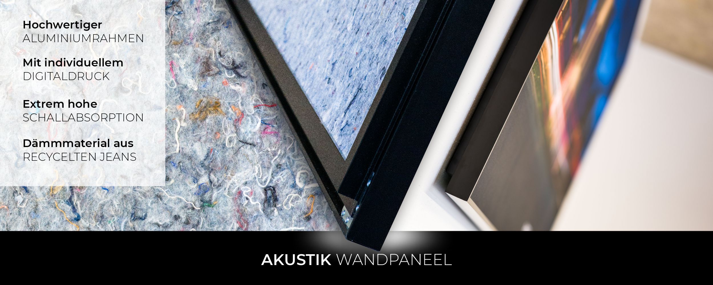 Unsere Akustikbilder bestehen aus recyceltem Jeansstoff – einem innovativen, ökologischen Dämmmaterial mit hervorragender Schallabsorption. So reduzierst du störenden Nachhall, verbesserst die Sprachverständlichkeit und schaffst eine angenehm ruhige Arbeitsumgebung – ganz ohne synthetische Materialien.